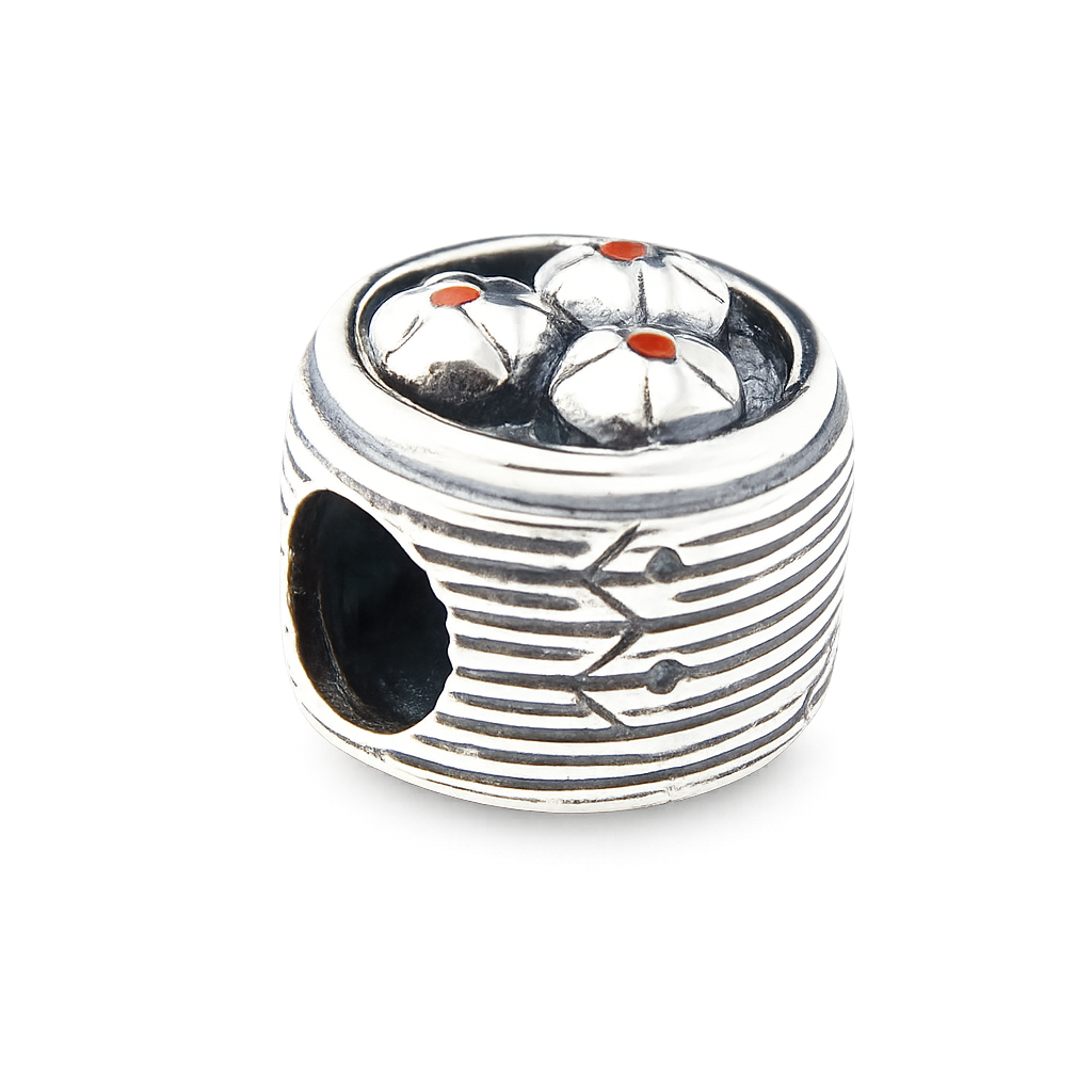 Dim sum is at the heart of Hong Kong culture, and this charm captures that tradition in sterling silver. The miniature steamer basket features layered ridges and a delicate design that reflects the artistry of Cantonese cuisine. A perfect keepsake for food lovers, it’s a reminder of lively teahouses, shared dishes, and the joy of gathering around the table.